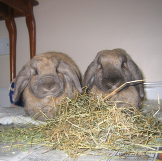 When we first got them it was real challenge as they weren’t fully grown and not big enough to be neutered. Trying to keep them apart so that we didn’t get more rabbits was extremely difficult. My husband built a hutch that fitted nicely under the desk in the study, they had been happily sleeping together for around 3 weeks when the time came that they were both sexually mature and we really needed to take a trip to the vets for the procedures. We saw the vet, only to be told that Geri was too small to be sedated and we should leave him to grow for at least another month! Of course we didn’t want to put Geri’s life at risk but it made life very difficult keeping them apart. We put a chicken wire frame between the door so that they could still see each other and touch noses but they couldn’t “get together!” Geri was like a tiger walking the stretch of the door backwards and forwards eyeing Emma up. We had to put him to bed in a small crate while Emma had the large hutch, it was a trying time. Poor chap, he was very frustrated!